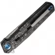 The We Knife Co Ltd Navo Linerlock CF (BRK-WE220262) is a sleek, high-performance cutting tool designed for precision and everyday carry. This model features premium Bohler M390 blade steel, known for its exceptional edge retention and corrosion resistance, housed within a lightweight and ergonomic carbon fiber handle. The robust liner lock mechanism ensures secure blade deployment, while the smooth action provides a satisfying open and close. The Navo's refined design and top-tier materials deliver a superior combination of functionality and style. 4.5" (11.43cm) closed. 3.25" (8.26cm) satin finish CPM-20CV stainless blade. Rose carbon fiber handle. Extended tang. Pocket clip. Black nylon zippered storage case. Boxed.