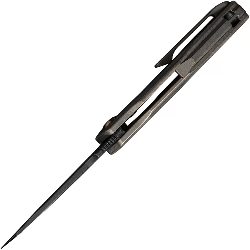 The StarHawk Framelock Gray, model BRK-WE210172, from We Knife Co Ltd is a premium cutting tool designed for discerning users. Crafted with precision, this knife features a robust framelock mechanism for secure blade deployment and rock-solid lockup. The gray-finished handle provides a comfortable and confident grip, while the meticulously ground blade promises exceptional performance and durability. Add this high-quality piece to your collection or utilize it daily with assurance; the StarHawk delivers both style and functionality. 4" (10.16cm) closed. 2.88" (7.32cm) black stonewash finish CPM-20CV stainless blade. Gray stonewash finish titanium handle. Extended tang. Pocket clip. Black nylon zippered storage case. Boxed.