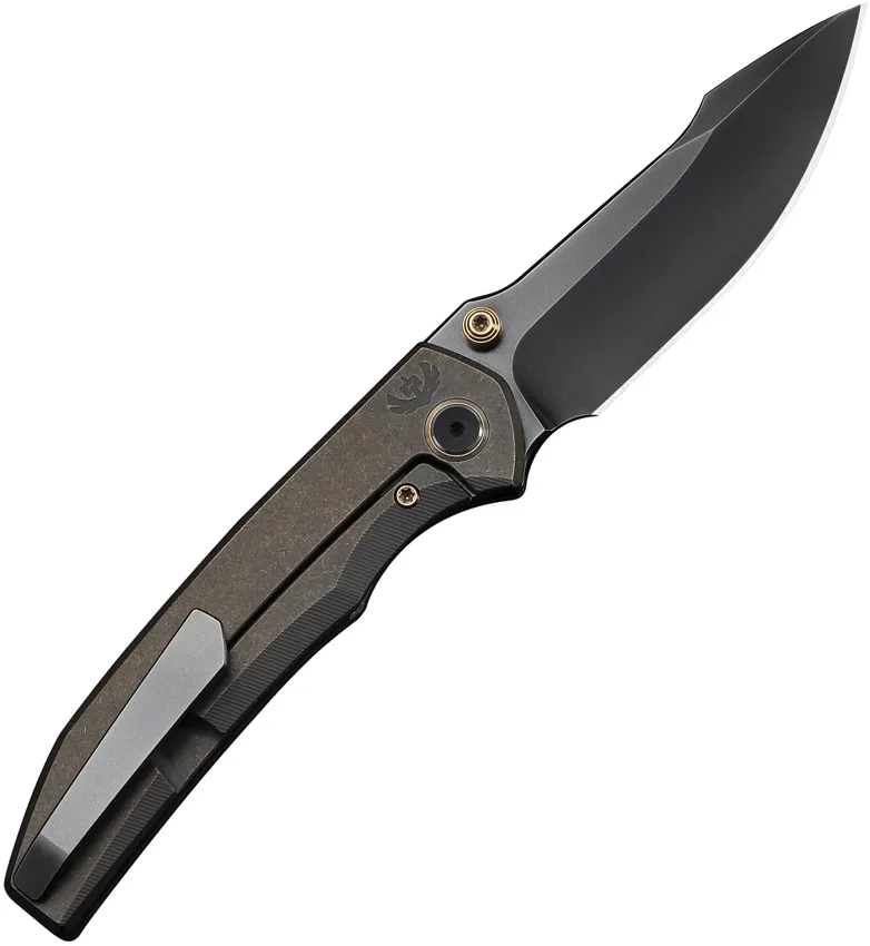 The We Knife Co. Ltd Ryson Framelock in Bronze (BRK-WE240863) is a premium folding knife crafted for discerning users. This model features a robust titanium framelock providing secure blade lockup, complemented by a bronze anodized finish for a sophisticated aesthetic. The Ryson delivers exceptional performance and precision engineering, boasting smooth action and premium materials sure to impress. The CPM 20CV blade offers excellent edge retention and corrosion resistance, making it a reliable tool for everyday carry or collection.