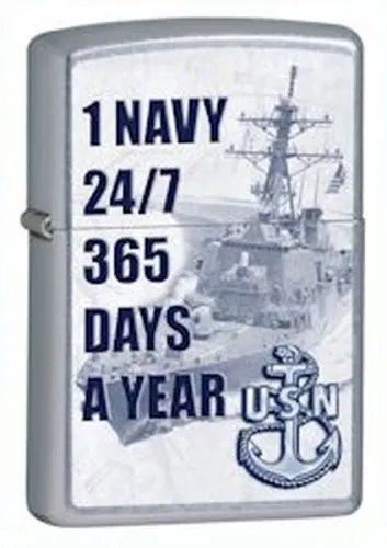 Zippo Us Navy 24-7 365 Days A Year lights 28578 on sale now for $16.82. UPC code 041689285784. There are 1 in stock. Made in USA.